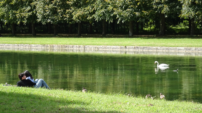 Nous sortons du jardin anglais et nous nous dirigeons vers le bassin où trône au milieu, Romulus en compagnie des oies