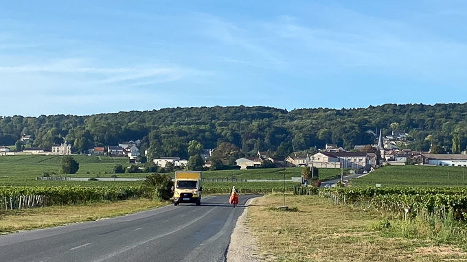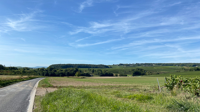 A Rilly-la-Montagne (51) nous entrons dans le vignoble et les coteaux champenois, il faut passer la colline devant nous