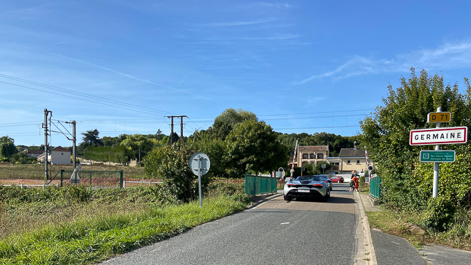 Nous sommes rattrapés par un bruit « infernal » à l’entrée de Germaine (51), une lamborghini et une ferrari sont obligées de ralentir sur le passage à niveau