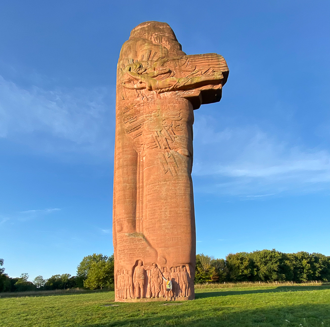 le monument de la Première bataille de La Marne 14-18 à Mondement-Montgivroux (51), je sers de référence (1m73) pour la taille
