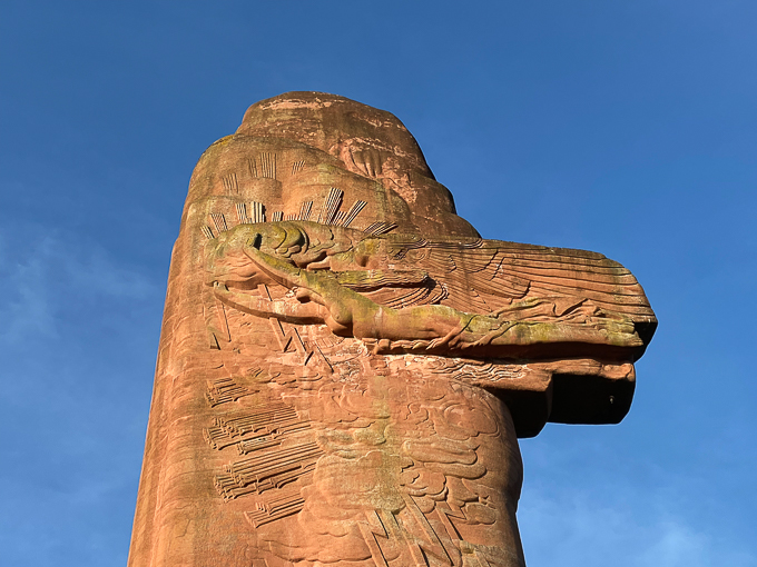 Nous avons bien commencé la journée par une surprise en quittant Oyes sur la D409, de découvrir ce gigantesque monolithe droit devant nous sur les hauteurs, nous savions qu’il y avait un mémorial mais on ne l’imaginait pas aussi gigantesque