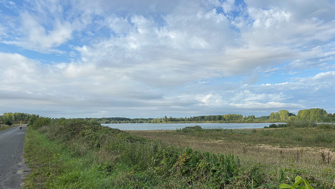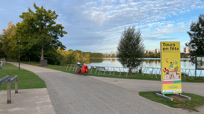 Départ à 7h30 accompagné des conseils d’Yves pour rejoindre « La Loire à Vélo » que nous trouvons sans difficulté. « La Loire à Vélo » dans le parc du Lac de la Bergeonnerie à Tours puis le golf et nous voilà en-dehors de Tours