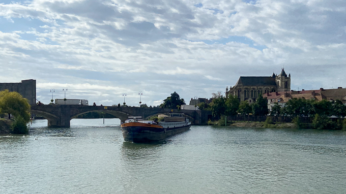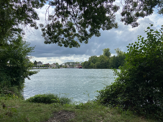 et à la confluence de la Seine et de l’Yonne, la péniche navigue et manœuvre sur l’Yonne pour repartir sur la Seine