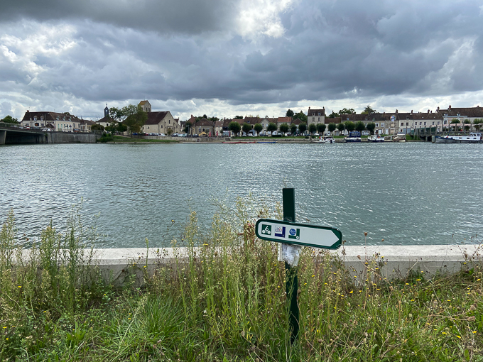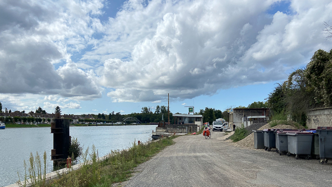 Retour en arrière, à Montereau-Fault-Yonne nous découvrons la voie cyclable « La Seine à Vélo » le long du fleuve