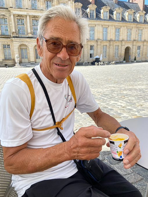 Nous sommes à Fontainebleau et c’est mardi jour de marché, il est trop tôt pour le marché mais les boulangeries sont prêtes à accueillir les clients. Léa nous conseille celle à deux pas du logement, les viennoiseries sont excellentes ; un pain viennois aux pépites de chocolat, un petit pain mendiant et une boule bio