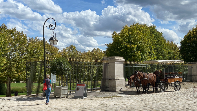 Nous commençons notre balade par l’avant du château et son escalier monumental en fer à cheval