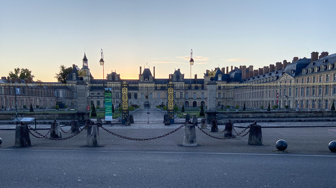 il est 7h30 lorsque nous passons devant les grilles de l’entrée du château de Fontainebleau