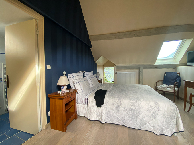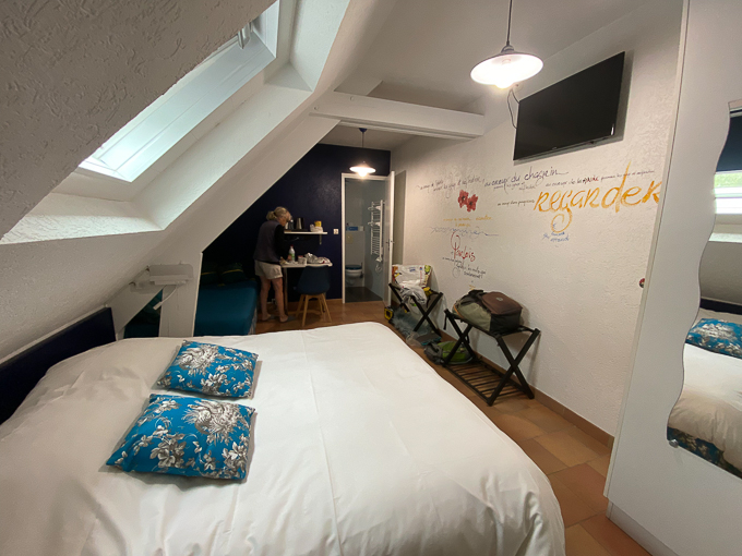 Nicole notre hôtesse du dernier jour de pédalage à St-Avertin (37) nous accueille dans la chambre chez l’habitant, nous installe ; les vélos dans le garage et nous dans la chambre en attendant l’arrivée de Yves notre hôte