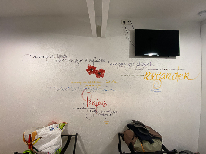 19h30 nous nous retrouvons à une dizaine dans la salle « à manger » en compagnie de 4 alsaciens dont 3 d’adoption, un couple d’espagnol et un technicien de maintenance, un habitué du lieu.
