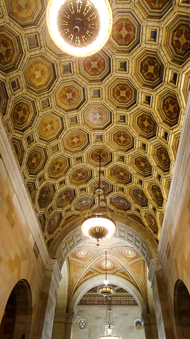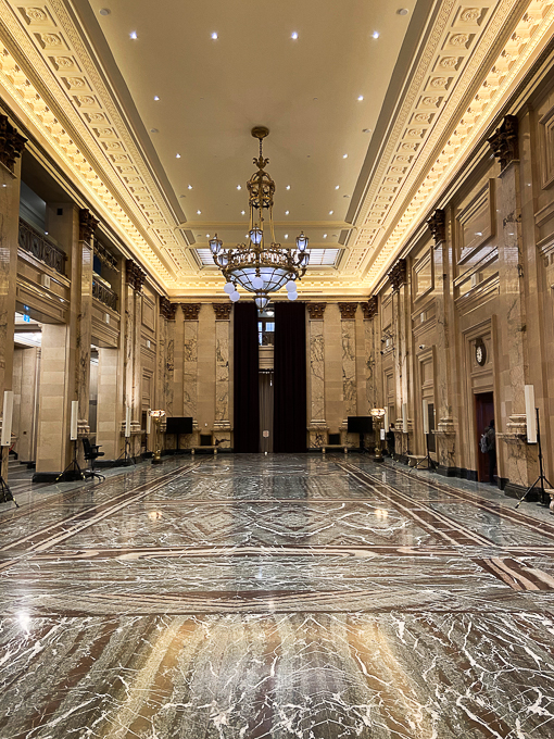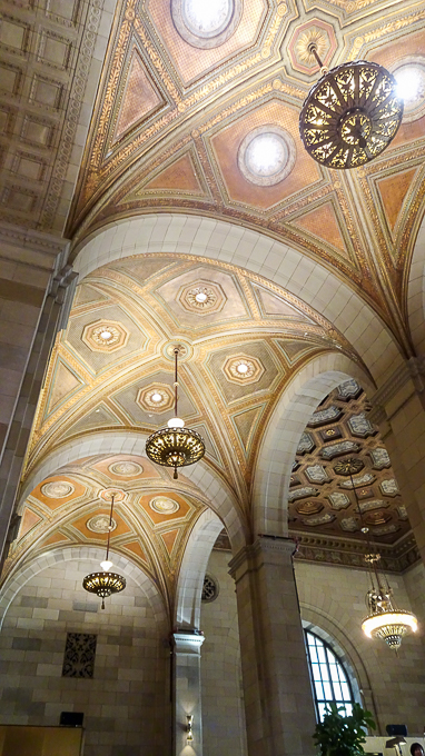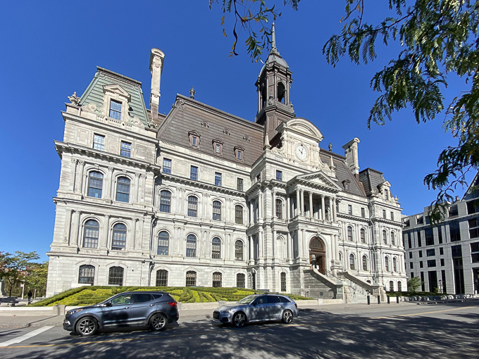 C’est un grand édifice de style Beaux-Arts français. Son intérieur est vaste et décoré de peintures murales qui célèbrent l’histoire de Montréal sous le Régime français.