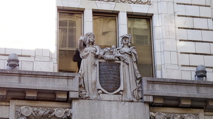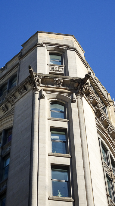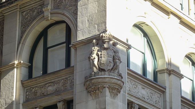 un détail de l’édifice de la Canada Life, un gratte-ciel à fonction commerciale de style néo-Renaissance érigé en 1894 et 1895