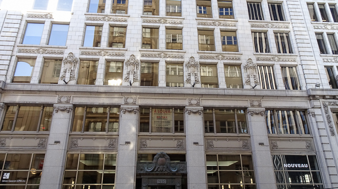 un détail de la façade de l’immeuble au 215 rue St-Jacques