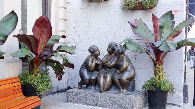 dans la rue Marie-Morin, « Les chuchoteuses » (2002) de Rose-Aimée Bélanger, née le 4/07/1923 à Guérin et morte le 12/11/2023 à Earlton en Ontario, une sculptrice canadienne