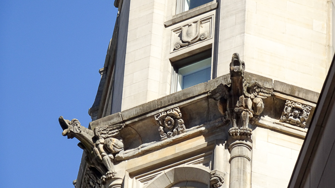 Insolite, les gargouilles sur le Lewis building à l’intersection de la rue St-Jean et de la rue de l’Hôpital