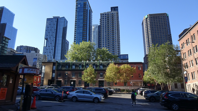les gratte-ciels derrière les immeubles d’habitation rue de la Gauchetière