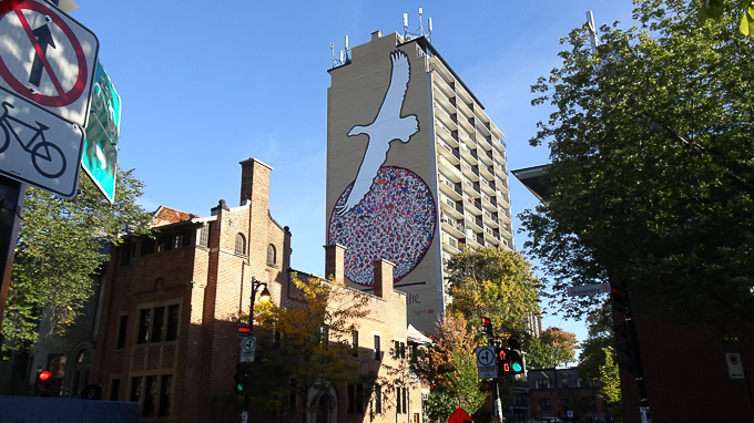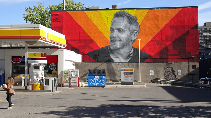 la magnifique fresque murale en l’honneur du regretté réalisateur Jean-Marc Vallée boulevard de Maisonneuve, un impressionnant portrait par son gigantisme
