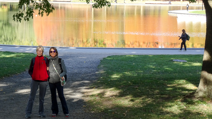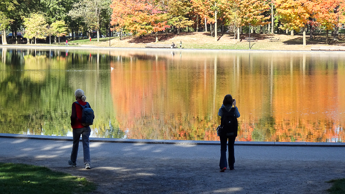 Magali et Simone au lac aux castors devant le tableau aux couleurs de l’automne