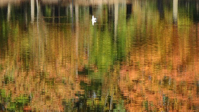 sur le lac aux castors, la mouette baigne dans l’abstraction automnale