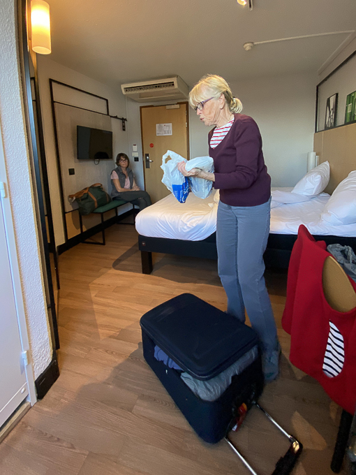 A Roissy, Magali qui est arrivée nettement plus tôt et a récupéré les clefs des deux chambres, s’est installée. Elle nous attend, plongée dans un roman, dans le hall de l’hôtel Ibis de Roissy CDG. C’est l’affluence à la réception, heureusement qu’elle a récupéré notre clé en même temps que la sienne !