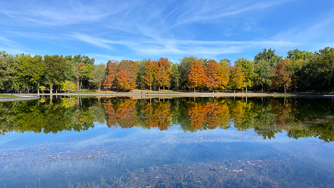 L’apparition de l’automne se limite à quelques arbres sur la rive du lac aux castors