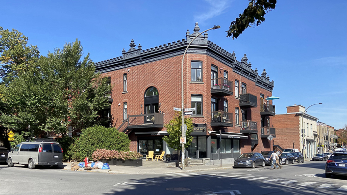 un immeuble à l’angle de la rue Villeneuve Ouest et la rue Hutchison