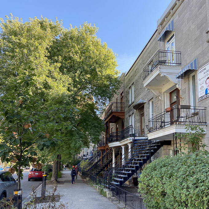 Après le déjeuner, nous prenons l’avenue du parc, au niveau du parc Jeanne-Mance, nous bifurquons sur l’avenue Mont-Royal Est,